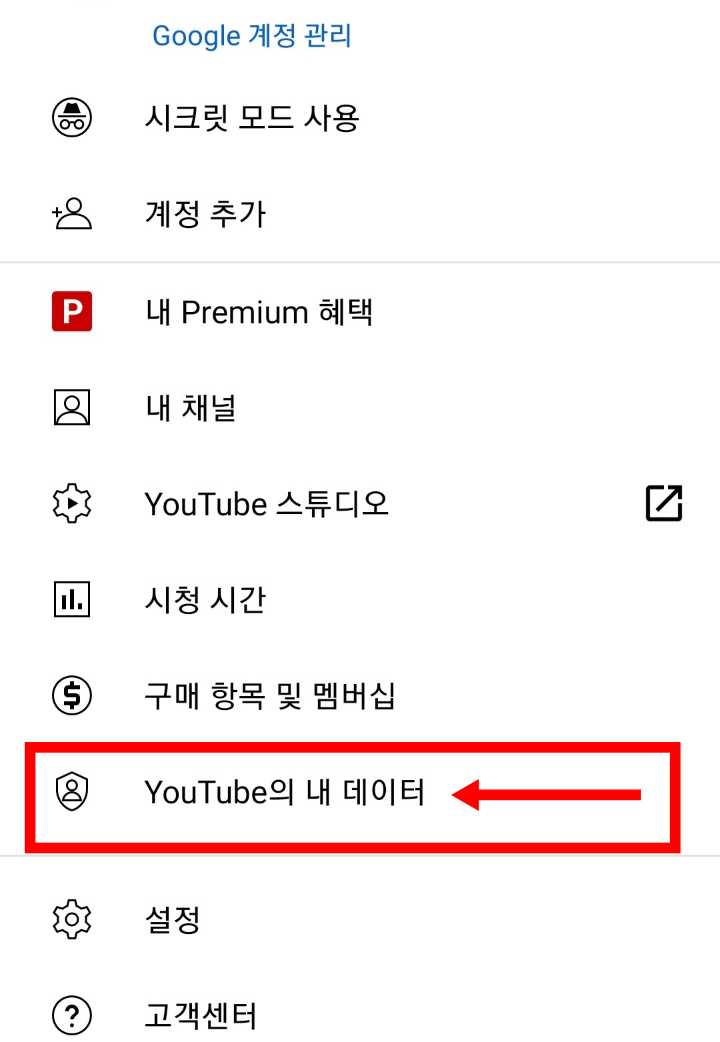 2. '유튜브의 내 데이터'로 들어갑니다.